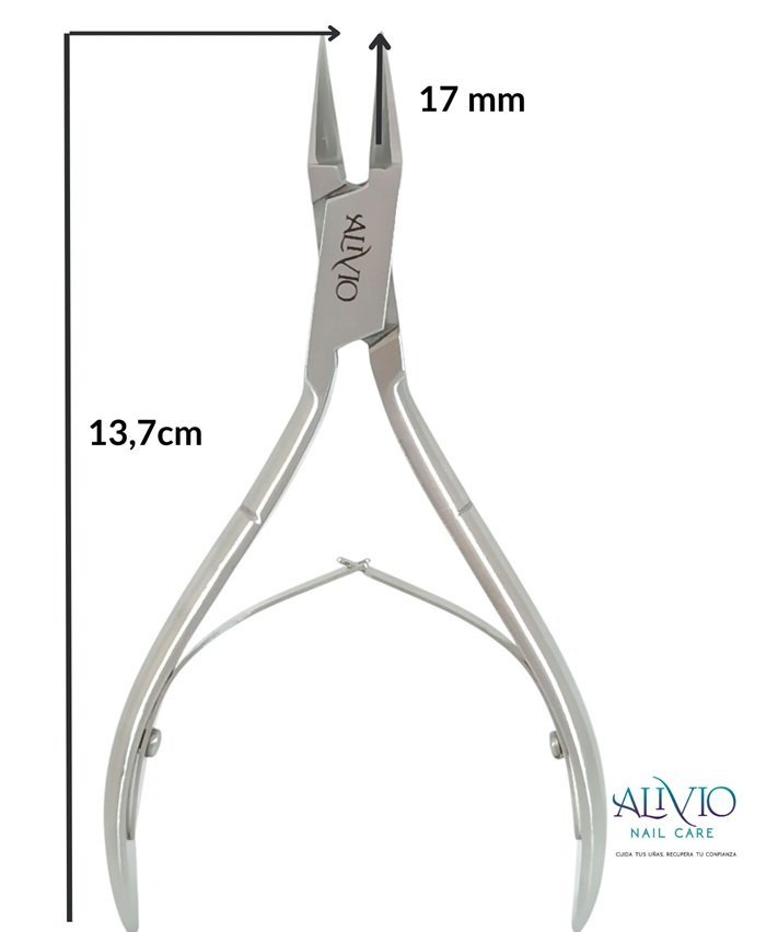 En Alivio Nail Care, entendemos lo complicado que puede ser tratar las uñas encarnadas y estamos dedicados a ofrecer soluciones que aporten verdadero alivio. Nuestro Alicate Recto para Uñas Encarnadas de 17 mm es un instrumento de corte de alta precisión diseñado para tratar uñas enterradas de forma segura y eficaz. Sus hojas rectas de 17 mm y puntas largas permiten acceder fácilmente a zonas difíciles y realizar cortes controlados, aliviando molestias sin dañar los tejidos.