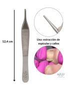 Pinza Adson dentada para podología: Ofrece un agarre firme y preciso en espacios reducidos gracias a su punta fina y dentada. Ideal para extraer espículas sin dañar los tejidos.